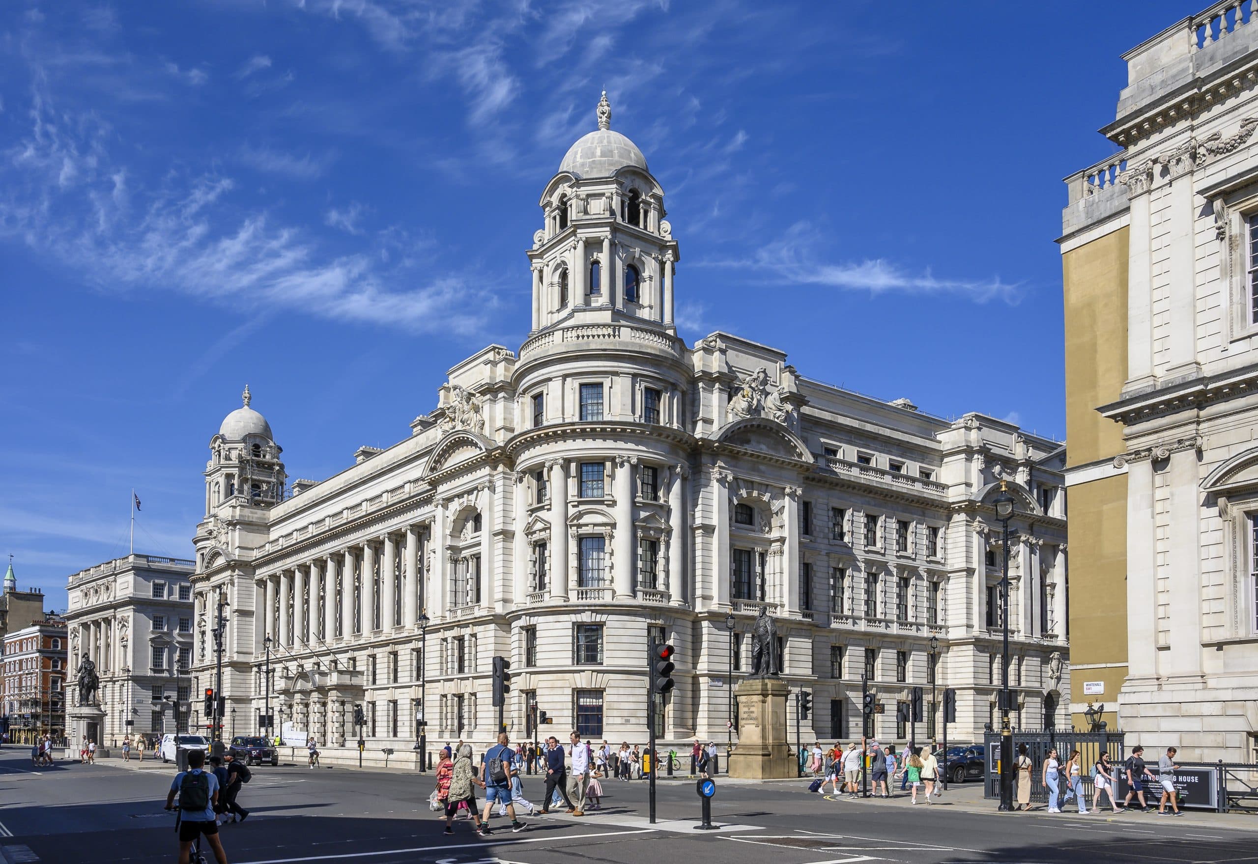 Chimneys, cupolas and balustrades were removed and later reinstated, and the external facades sympathetically cleaned and repaired.